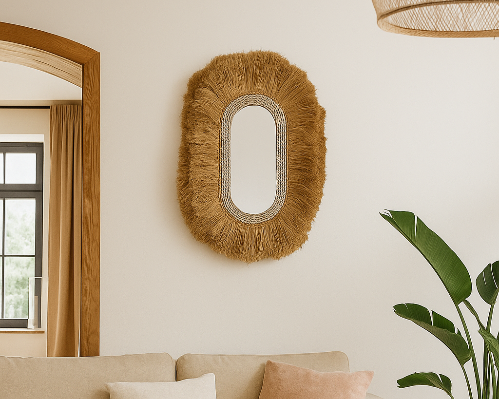Hang je Bohemian spiegel op ooghoogte en laat wat ruimte boven meubels zoals een dressoir of bank. Zo oogt je interieur rustig en stijlvol, terwijl de spiegel meteen de aandacht trekt. Een spiegel op de juiste hoogte zorgt voor balans én laat je ruimte groter en lichter lijken.