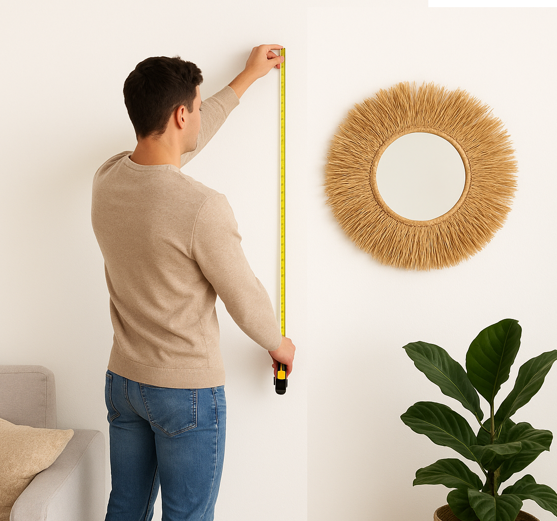 Gebruik een meetlint en bepaal de breedte en hoogte van de muur of de plek waar de spiegel komt. Zo weet je precies hoeveel ruimte je hebt.