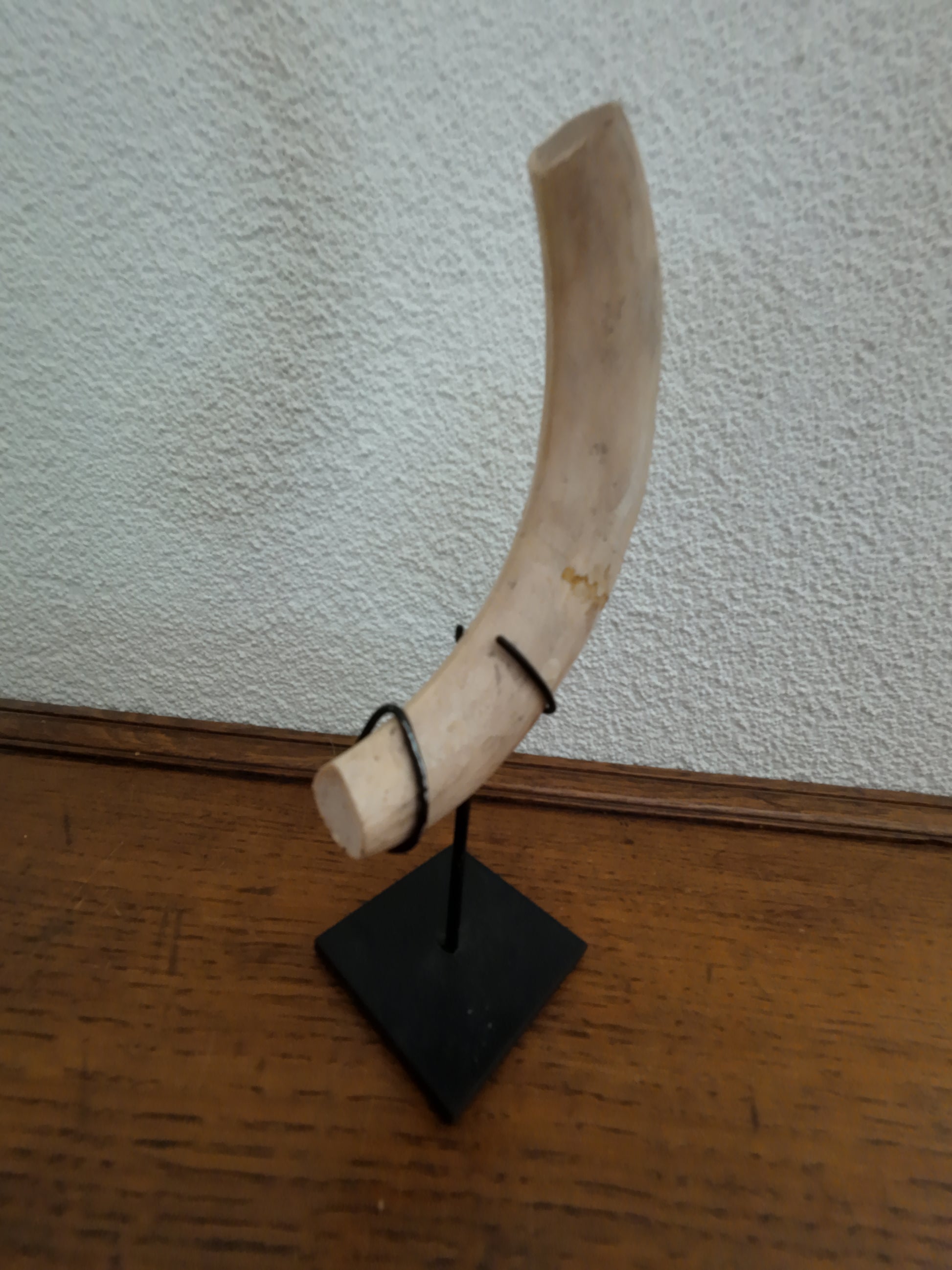 The horn is mounted on a stand, giving it an elegant sculptural effect – ideal as a statement piece in modern and ethnic-inspired interiors.