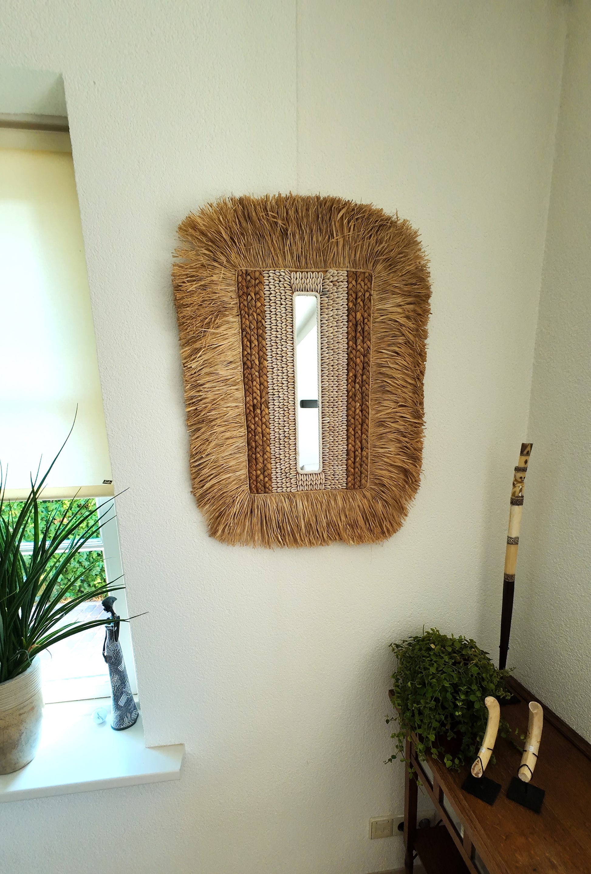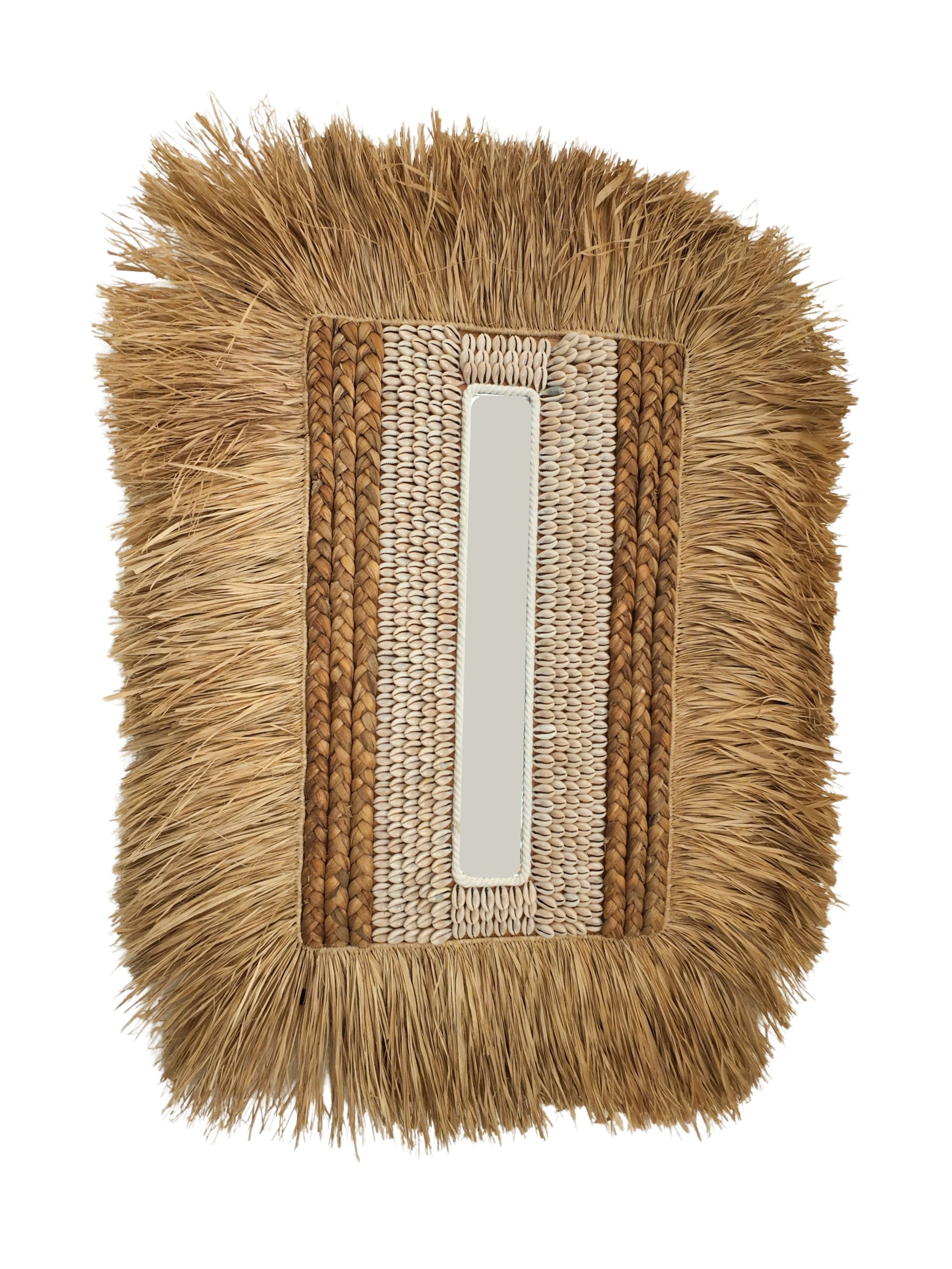 Bring the ultimate combination of Bali and Ibiza vibes into your home with the Island Breeze Mirror . This unique rectangular mirror is handcrafted from natural seagrass and adorned with woven details and shells. The playful mix of organic materials and refined craftsmanship gives any room a warm, boho-chic feel. Perfect as a focal point in the hallway, living room, or bedroom – this mirror reflects not only you but also your love of style and natural elegance.