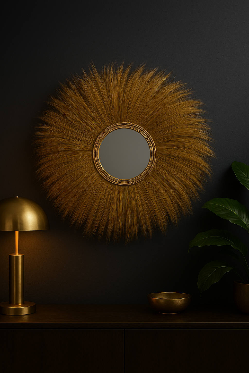 Laat je interieur stralen met de Cahaya Cermin – een unieke, handgemaakte spiegel die meer is dan een gebruiksvoorwerp: het is een waar kunstwerk. Met zijn speelse, golvende haren van natuurlijk vezel straalt hij als een zon die jouw ruimte vult met warmte en energie. Het compacte spiegelvlak benadrukt de royale omlijsting, waardoor de vorm en structuur nog meer in het oog springen.