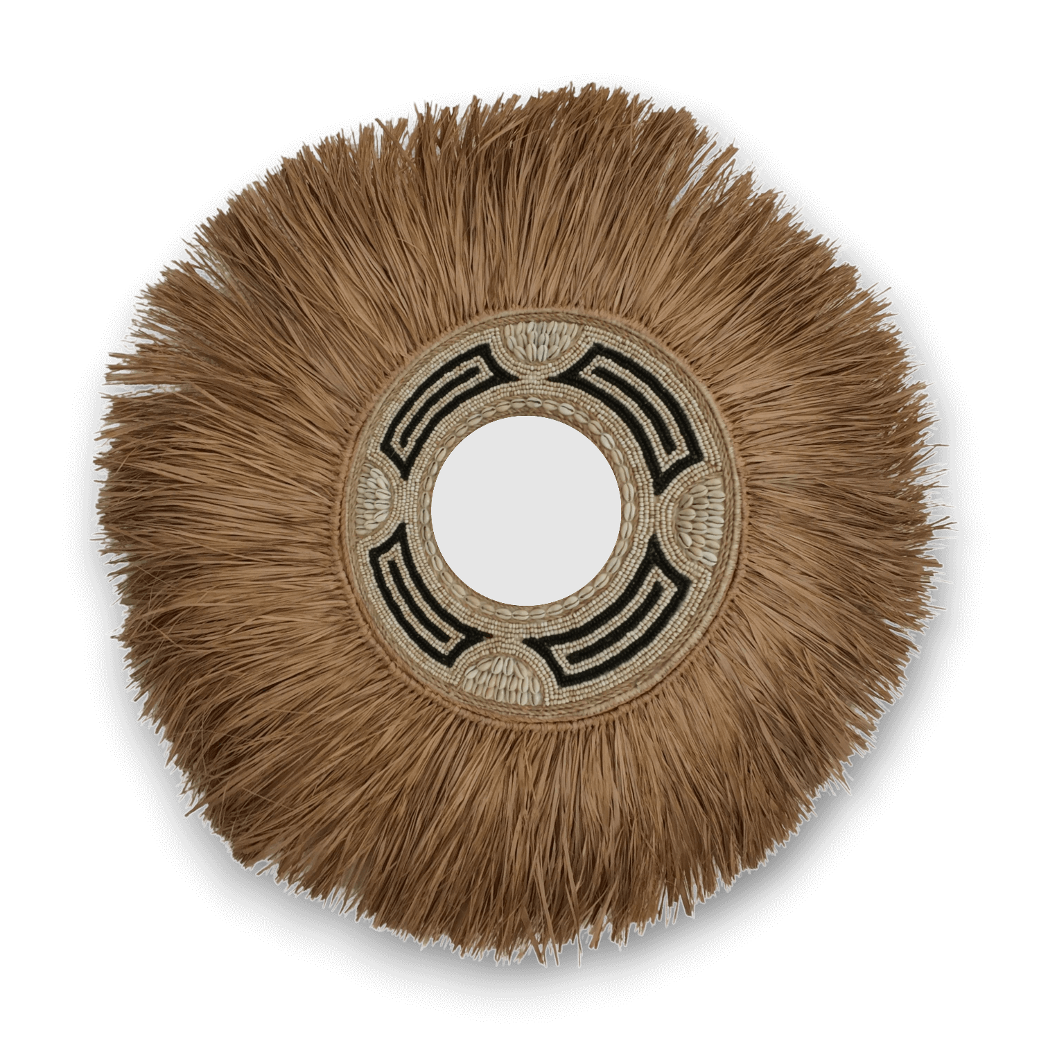 Breng de ziel van Indonesië in huis met Spiegel Java Soul. Deze unieke wandspiegel is volledig handgemaakt in Indonesië met natuurlijke raffia en verfijnde schelpen-details. Het ontwerp ademt de tropische sfeer van Java en combineert perfect met een bohemian of Ibiza interieur.