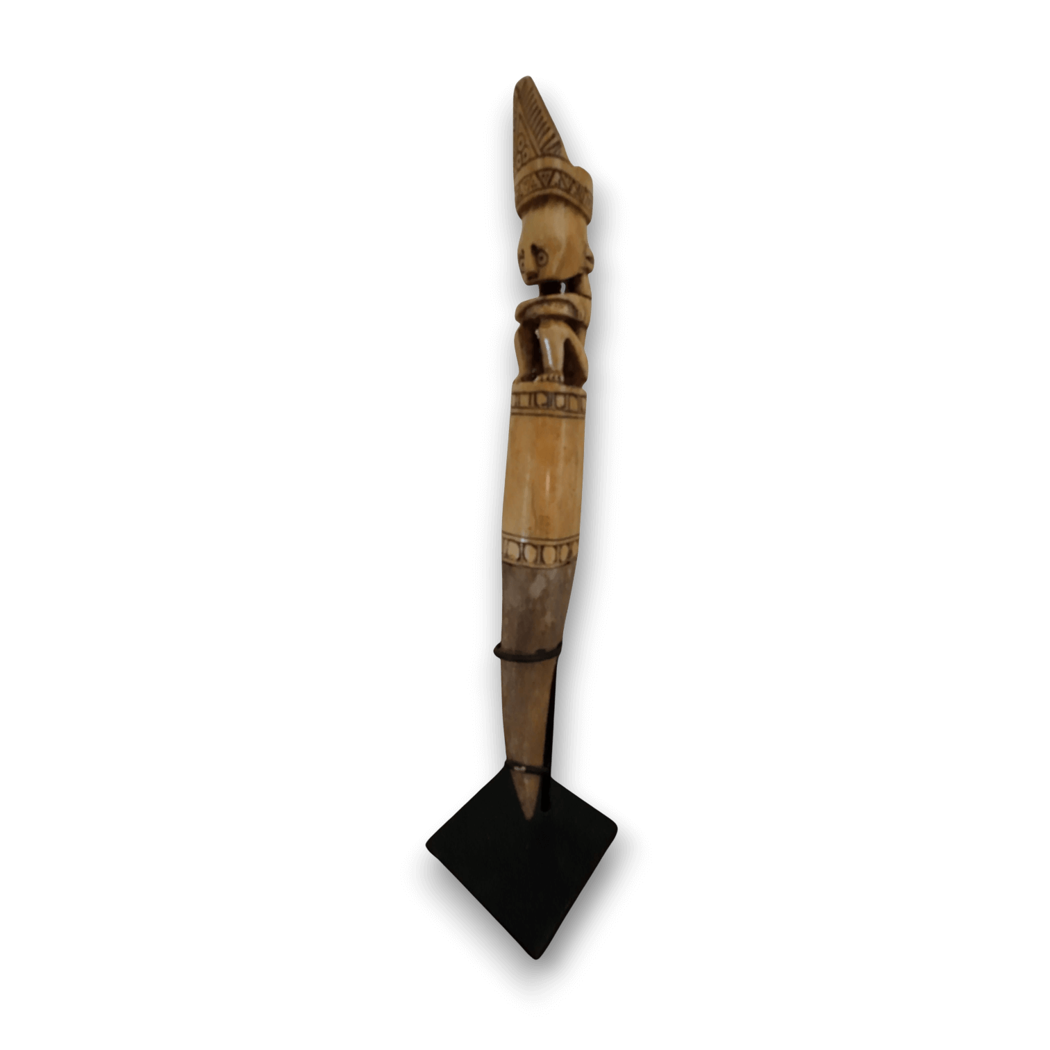 Plaats dit unieke object op een kast, dressoir of wandplank en laat het dienen als een sfeervol accent dat direct karakter en authenticiteit toevoegt aan je interieur. Perfect voor liefhebbers van wereldse kunst, tribal invloeden en etnische decoratie.